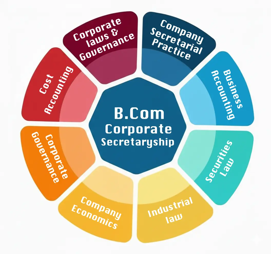 Graduates can pursue careers as Company Secretaries, Compliance Officers, Legal Advisors, Corporate Consultants, or Secretarial Executives in corporate firms, law firms, and financial institutions. The degree also provides a strong foundation for professional courses like Company Secretary (CS) from ICSI, LLB, or MBA in Corporate Governance.
